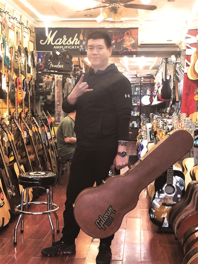 胡俊杰告诉记者,上学的时候,他看到别人弹琴,觉得特别帅,自己也很喜欢,所以就跟着学。那个时候他喜欢黑豹、唐朝等乐队,经常会听他们的歌。没事时,他也会自己弹弹。