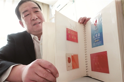 孙佑波还收藏了很多工作证、代表证,其中那张丰台花乡第一届工会代表大会的代表证是他从朋友那里要来的,“朋友们知道我喜欢收藏老物件,有什么工作证、代表证都会留给我。这个证件对我来说很有意义,后来的2002年我开始从事工会工作,如今已经16年了,能看到20年前工会代表大会的证件,再想想,这几十年工会的发展越来越好,就觉得很有一种见证感。”