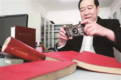 “你看看这本老党章,是1956年的。”孙佑波指着一个7厘米长、5厘米宽,封皮是紫色、内部纸张早已泛黄的小册子,对记者说道。