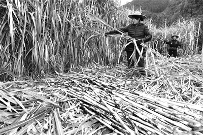 12月9日,松溪县郑墩镇万前村农民在收割“百年蔗”。近日,福建省松溪县郑墩镇万前村“百年蔗”喜获丰收,当地农民正抓紧砍蔗制糖。近年来,万前村依托“百年蔗”独特优势,大力发展蔗糖生产,带动农民脱贫致富。万前村“百年蔗”始种于清朝雍正年间。2012年以来,当地蔗农采用根系繁育法,培育扩种这一古老甘蔗品种,种植面积由仅存的0.7亩扩大到300多亩。新华社发