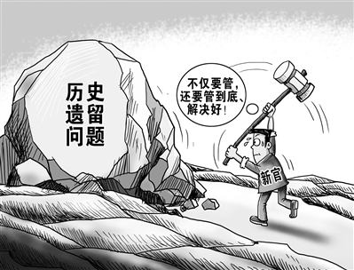 近日,辽宁省委领导在一次座谈会上说,新官不仅要“理旧账”更要“买旧账”。意思是说:面对历史遗留问题,不仅要管,还要管到底、解决好。一段时间以来,一些地方“新官不理旧账”的问题较为突出。有的新官认为自己的事情还没干,就要管前任的事,管好了是给前任贴金,管不好是给自己添堵,于是“旧账”变“呆账”、成“坏账”,越来越难解决。(12月10日新华社)□朱慧卿