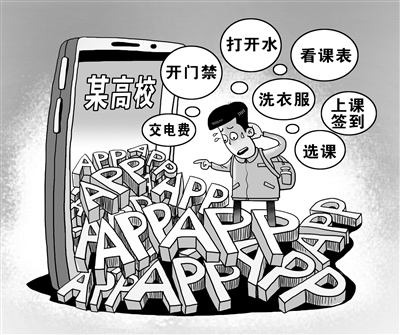 “开门禁、打开水、交电费、洗衣服、选课、看课表、刷课、上课签到都有各自的APP。学校各部门要求装的软件十来个,一个软件只能实现一个功能,各自为政。”一位大学生对此非常无奈。