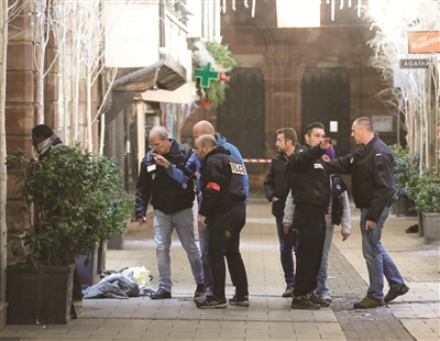图为12月11日,警察在法国斯特拉斯堡市中心的枪击事件现场附近调查。