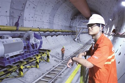 直径线下部结构与道床施工期间,由于工期紧、任务重,提高机械化施工水平成了当务之急。古艳旗带领设备部三人团队加班加点,最终发明了一整套隧道施工专业化设备,包括浮放道岔、混凝土罐车调头旋转平台、钢板安装机等,有效解决了有轨电瓶车的汇车及流水线作业、混凝土罐车的隧道内调头、隧道内管片加固钢板的安装难题,提高了施工效率,保证了生产安全。