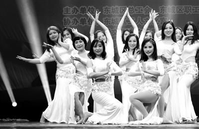 本报讯(记者 边磊)伴随着柔婉袅娜的民族舞——《新疆姑娘舞起来》,东城区职工文促会慰问环卫职工文艺演出暨东城区职工兴趣班汇报展演在崇文工人文化宫红剧场拉开帷幕。
