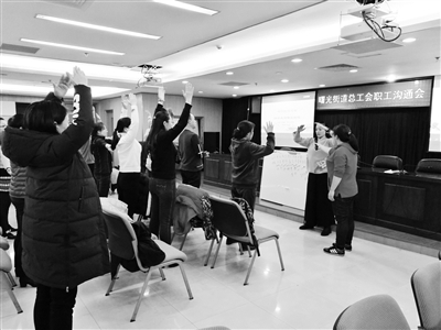 近日,海淀区曙光街道总工会举办了职工沟通会,并开展了国学养生之八段锦讲座。在现场,海淀区总工会邀请的专业老师对国学养生和“八段锦”的渊源、功法原理、动作名称和要领进行了详细讲解,亲身演示并详细讲述每一个分解动作。