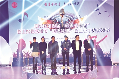 11月28日下午,顺义区总工会“放飞梦想”职工歌手大赛决赛在工人文化宫剧场成功举办。本次歌手大赛也得到了基层工会的大力支持和广大职工的积极参与。民族组有32家单位参加,通俗组有58家。为了保证比赛活动的公开、公平、公正,本次比赛使用了电子评分系统现场打分,大屏幕同步显示。整场舞台效果带动了歌手们的情绪,吸引了观众的视线,将歌曲的内涵真正地展示给观众,增加了艺术效果和艺术魅力。