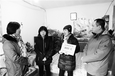 近日,怀柔区红十字会特邀捐赠企业北京建工集团四建公司慰问该区困难家庭,监督爱心捐款使用情况。此次接受捐赠的怀柔镇职工刘师傅身患急性髓系白血病,治疗费用达32万元。在区红十字会常务副会长吴秋红的引领下,四建公司领导深入到刘师傅家中,送去8000元慰问金和慰问品,并叮嘱职工保重身体,鼓励职工全家积极面对生活。