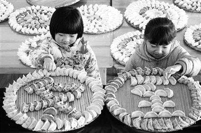 我大喜过望,见弟弟已经睡着了,赶忙把弟弟放在炕上,洗洗手帮着母亲擀饺子皮。大约半个小时后,一盖帘饺子包好了。