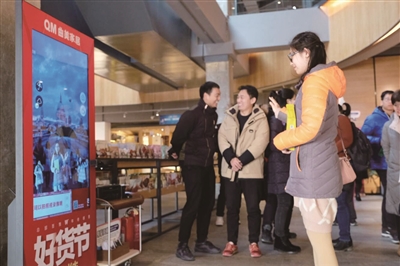 作为“2019北京跨年促销节”系列主题活动之一,昨天下午,“黑科技·智慧前沿”活动率先在曲美京东之家北五环旗舰店举办。本届活动为期2个月,以“品质新消费 智享新生活”为主题,联合了百余家线上平台、千家线下门店参与。图为市民在现场体验Ai智能导购、AR试衣镜等趣味科技设施。