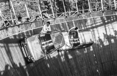 12月25日,在印度加尔各答附近的博尔布尔,表演者驾驶汽车在“死亡之井”中表演。“死亡之井”是印度流行的一种特技表演,这项活动的表演者通常驾驶汽车或摩托车,在桶状赛道上行驶,并展示自己的绝活。新华社发