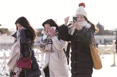 12月27日,北京进入冰冻模式,最高气温仅有-5℃,最低气温-12℃,并伴有七级阵风,体感非常寒冷。这样全天处在冰点以下的天气还将持续到30日,公众需注意防寒保暖。图为市民“全副武装”出行。