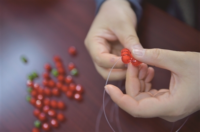 “手可以这么握,串到线上的珠子要分层……”12月21日午休时间,东城区民政局会议室中一场有趣的工会活动正在进行中,来自东城区社区服务中心的副主任秦臻正生动地讲解串珠手工艺品的制作方法。串珠是最近秦臻才开始尝试的一项手工艺,虽然接触时间不长,但是已经可以比较熟练的完成一些作品的制作了。因为有着一双巧手,平时又喜欢琢磨手工艺品制作。所以,这次工会找到她来主持工会大课堂活动。在同事们眼中,秦臻是一位热爱手工艺制作的巧手达人。