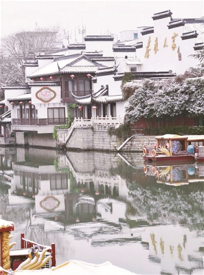 近日,我国多地迎来降雪,雪后的中国古典建筑别有韵味。图为近日在江苏省南京市夫子庙景区拍摄的雪景。