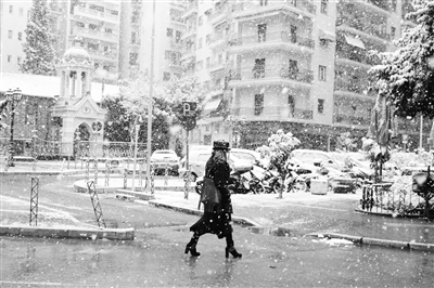 希腊消防部门1月6日表示,寒流带来的恶劣天气在希腊已造成3人死亡。新年伊始,寒流给希腊全国大部地区带来大风、降温和雨雪天气,中部和北部地区气温降至零度以下并出现强降雪天气,造成部分地区道路封闭、大面积航班延误及轮渡停运。图为希腊塞萨洛尼基,一名女子从飘雪的街头走过。 新华社发
