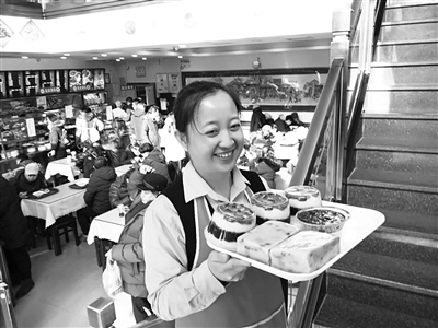 昨天是农历腊八节,京城老字号餐厅忙活儿起来。记者从护国寺小吃了解到,今年除了腊八粥和腊八饭外还新增加了腊八糕,葡萄干、瓜子、核桃……10多种食材,营养非常丰富。此外,庆丰包子铺、二友居肉饼、惠丰饺子楼、惠丰门钉肉饼等餐厅,都准备了腊八粥,同和居、同春园的部分门店更是推出了桌桌送腊八粥的活动。本报记者 孙妍 摄影报道