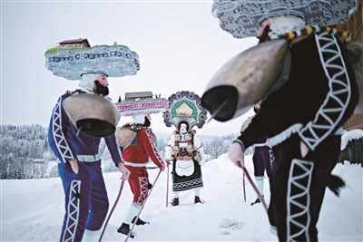 1月12日,在瑞士外罗德阿彭策尔州乡村,盛装的村民摇着牛铃参加旧历除夕祈福活动。1月13日是外罗德阿彭策尔州的旧历除夕,当地村庄以特有的传统方式辞旧迎新。 新华社发