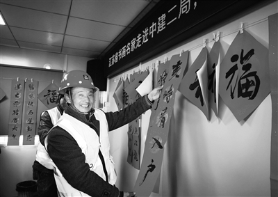 正在忙活着的衡正安和他的“伙伴们”听到后,立刻挽起袖子给她写下了多副对联,还有满满的福字。“今年是我们第一次送传统文化进工地,我们觉得很有意义。”说着,他乐呵呵地拍下和工友们举着“福”字的合影,要拿回去留个纪念。