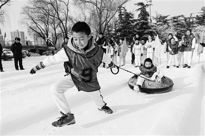 1月18日,来自北京外国语大学附属小学的40名小学生在玉渊潭公园开展了一场别开生面的雪地运动会。据了解,趣味雪地运动会作为“冰雪运动进公园 快乐健身迎冬奥”第五届北京市属公园冰雪游园会项目之一,专为放假的中小学生举办,为北京冬奥会送出一份美好祝愿。为更好地感受和理解奥林匹克精神搭建全新的渠道和平台,让冰雪与文化、艺术、体育等多方面结合,今年还特别设置了雪地广播操、雪地曲棍球、雪地青春竞速、雪地牵钩拔河、雪地足球、雪地搬运工等项目。本报记者 邱勇 摄影报道