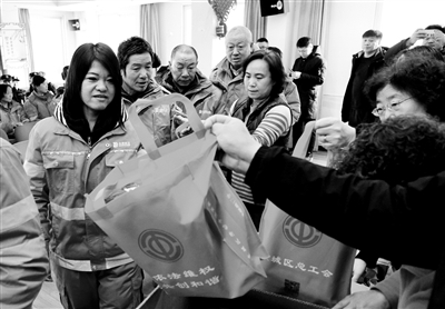 1月15日,东城区安定门街道总工会召开2019年为户外劳动者送温暖启动仪式,为户外劳动者代表颁发慰问品,并为全年为户外劳动者义务理发的理发师颁发荣誉证书。有劳动者表示,天冷时戴着工会发放的围脖、电暖宝,除夕夜吃着组织送来的热乎乎的饺子,让离乡务工人员感受到家的温暖。