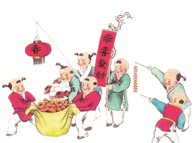 过了腊八之后,各种民俗节目轮番上演,但有些民俗逐渐消逝,像“书春摊”在北京就永远看不到了。“书春摊”消失的同时,摆摊卖年画的也见不到了。挂年画是春节前必不可少的程序,《京都风俗志》称:“五色新鲜,千张弦目,则卖画者。”当年,无论家境穷富,在年前都要更换挂了一年的年画,年画的销售量是很大的。我国年画的种类很多,北京地区年画摊所卖的年画以天津杨柳青为主,山东潍坊为辅。由于有大运河,在清中季以前,年画摊还会有苏州桃花坞的年画。年画的风格虽南北有异,但内容均为人们喜闻乐见,如胖娃娃、仕女、戏曲、历史典故等等。民国之后出现的“月份牌画”有些与年画有相同内容,但属商业广告,不可混为一谈。
