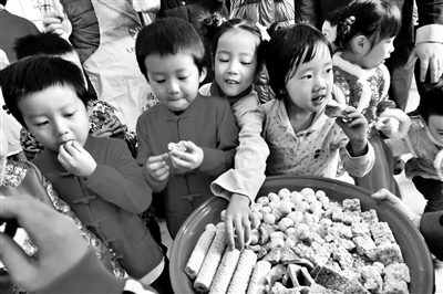 第一教育幼儿园的小朋友们也参与到其中,他们发挥想象力,“小孩小孩你别馋,过了腊八就是年……”稚嫩的童音里,道出了孩子们对春节的向往,每个人脸上洋溢着幸福的笑容。
