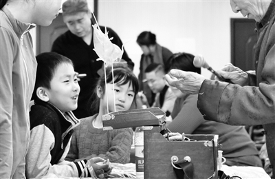 各式各样的非遗技艺和作品集中呈现在居民们眼前,让人应接不暇,其中,就有40余位饶有兴致的孩子们。“听说街道举办民俗庙会,我赶紧带他来看非遗制作,亲自动手体验,活动很有意义!”现场一位家长分享道。