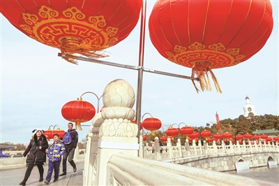 春节假期即将到来,北京市属各公园及中国园林博物馆“逛公园、纳五福,诸事如意、红火过年”46项游园活动帷幕拉开。本市首次对公园门区、沿线及主要景区布置点、线、面结合的节日景观,全新打造“传统与创意”相结合的游园景观环境,营造欢乐祥和、喜庆热烈的节日氛围。