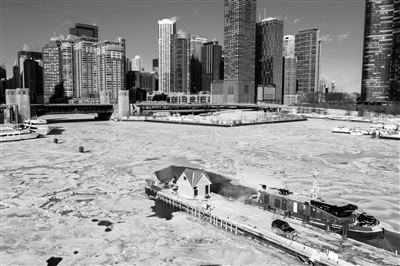 受极地漩涡来袭影响,美国芝加哥1月30日出现零下30摄氏度的极低气温,创下该市近25年来最低气温纪录。图为一艘消防船停在结冰的水中。新华社发