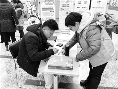 近日,海淀区曙光街道总工会在金源商务中心一楼大厅开展职工志愿者宣传活动。现场,职工志愿者向参加活动的职工讲解加入工会组织享有的优惠服务、工会会员互助服务卡的办理方法、下载北京工会12351手机APP、职工互助保险等问题,并指导愿意加入工会组织的职工填写入会申请表。本报记者 赵思远 摄影报道