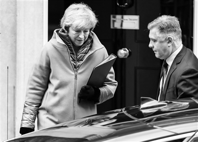 2月12日,在英国伦敦,英国首相特雷莎·梅离开唐宁街10号首相府。