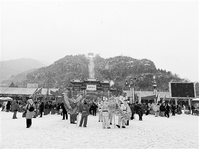 2月14日,农历正月初十,北京市平谷区刘家店镇第二十二届农民艺术节暨花会秧歌表演擂台赛在国家4A级景区丫髻山太极广场举行。本届农民艺术节以“丫髻风情颂古韵,百年老会贺新春”为主题,在全镇选拔出17档新老花会和秧歌、广场舞队进行同台打擂,展现当地农民的新风貌。