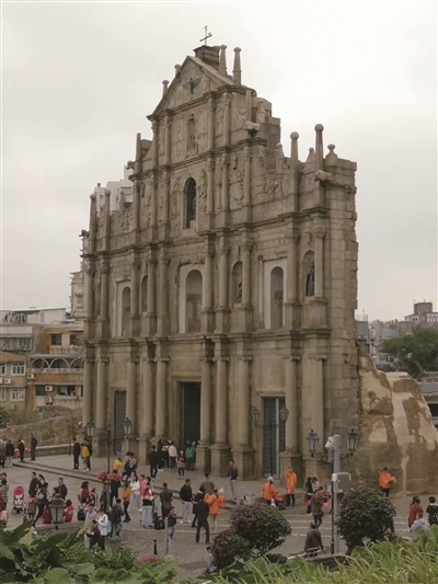 澳门,炮台山下,高高台阶之上,赫然伫立着大三巴牌坊。