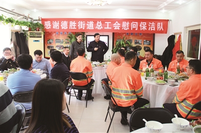 街道总工会主席陈洪祥表示,每逢佳节倍思亲,在每年春节期间,家家户户都热热闹闹,而这些远离家乡,坚守岗位,为首都做贡献的务工人员更应得到关心和爱护,工会应该发挥娘家人的作用,关心关爱这些春节在岗的职工。