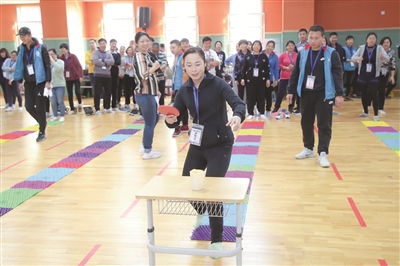 四人八足跑、仙人指路、幸福接力、指压板上运球,4个团体赛均是考验团队配合的。个人单项分别是跳绳、踢毽子、袋鼠跳、斗鸡。在袋鼠跳和斗鸡比赛中,各组的队员都拿出了为团队而战的气势。因为是周末,许多职工还带了自家的娃,在场外当拉拉队,平日睡懒觉的孩子,在全场运动氛围的带动下,也拿起毽子、跳绳玩起来。各队队员们纷纷表示,这样欢乐的趣味运动会人人都能乐在其中,特别适合职工参与。