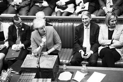 2月27日,英国首相特雷莎·梅在议会下院进行首相问答。特雷莎·梅2月26日说,如果“脱欧”协议在3月的英国议会下院投票中未获通过,且“无协议脱欧”被排除,那么将由议会下院通过投票决定是否推迟“脱欧”。图为英国首相特雷莎·梅(前)在议会下院进行首相问答。