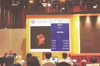 这次拍出的11万元的安宫牛黄丸是上世纪60年代生产的。作为一款常用紧急用药,药店一般标价500元左右不等,而商家之所以要1993年之前生产的安宫牛黄丸,主要是由于1993年原卫生部下发了《关于对原处方含有犀牛角和虎骨的中成药改变成分和更改名称等有关问题的通知》,全面禁止了犀牛角在国内的使用,而老版的这个药,显然是有这个稀有的珍贵动物的配方。物以稀为贵,自然地价格就截然不同了。