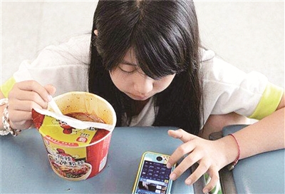 点评:培养生活好习惯,从现在做起。吃饭玩手机有弊无利。再不注意,就等着变胖吧!