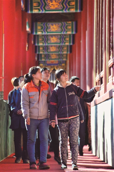 “我在北京工作六年了,曾经在三四家公司工作过,这是我第一次享受这种待遇。”来自山东辽城的女农民工马红霞激动不已,“天安门、故宫都是我们特别想去的地方,公司工会帮我们圆了这个梦。”一大早,她和其他6名姐妹一起从延庆来到故宫。