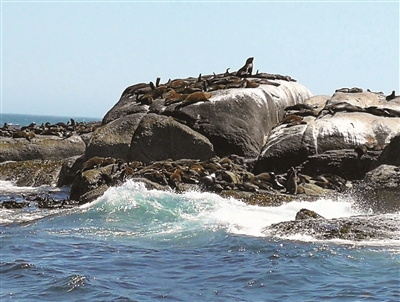 记得前往海豹岛时,我脑子里假想着各种安全防御情景。临近海豹岛时,竟然发现,那些毛绒“土著”,根本不理会如过江之鲫的游客。海豹们挤挤挨挨地躺在波涛汹涌的礁石上,全都是一副享受日光浴的慵懒之态。