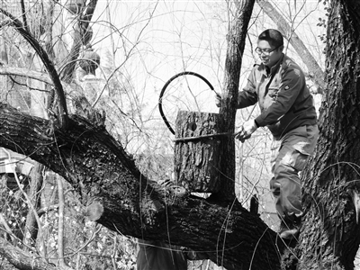 记者看到,在北京动物园西北侧水域旁,公园饲养、兽医部门的工作人员正在为鸳鸯搭建人工巢箱。人工巢箱分为两种,一种是长方形的木质巢箱,还有一种是原木制作的仿生态巢箱。人工巢箱通过高梯、高架车悬挂在水域中心及附近的柳树上,这便成了鸳鸯的新家。北京动物园副园长张成林介绍:“每年3-4月份都是鸳鸯的繁殖季,鸳鸯产卵都是在水域旁的树洞上,符合条件的天然树洞很少,通过这种人工巢箱有效地缓解了鸳鸯的‘住房难’问题,保证它们平稳度过繁殖季。”