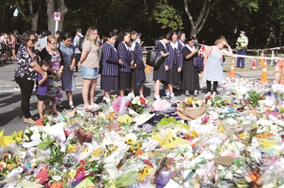3月20日,在新西兰克赖斯特彻奇,一些中学生在枪击案现场向死难者致哀。新西兰南岛克赖斯特彻奇市两座清真寺15日发生严重枪击事件,致50死50伤。新西兰全国各地持续展开悼念活动。本周克赖斯特彻奇大中小学纷纷举行悼念活动,纪念遇难者。 新华社发