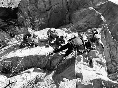 “这是一个高空攀岩项目,类似华山栈道,游客有一根保护绳,踩着人工打在岩壁里的钢筋支点,高低起伏地往上攀爬。”参与救援的雁栖中队四级指挥员王振江说,“项目岩壁呈一个仰角,被困男子在往上攀爬时,因体力不支,没抓住支点,吊在了半空中。”