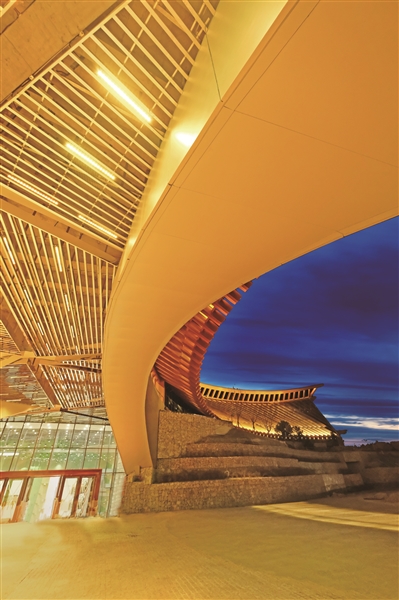 红花绿草、亭台楼榭,中国馆的“天人合一”景观让人仿佛在历史与自然中穿行。其中,中国生态文化展区将以“天地人和”、“惠风和畅”、“山水和鸣”、“祥和逸居”、“和而共生”为主题依次布局,为参观者讲述青山绿水的故事。植物馆内绿意葱葱,小叶紫檀、地涌金莲、青果榕等珍奇植物长得茂盛。会期,植物馆内不仅将汇聚1000多种珍贵植物,还将引入神秘红树林,再现红树林适应海潮涨落演化出的胎生、支柱根、泌盐等特征,展示红树林作为海岸卫士和地球之肺的生态功能。