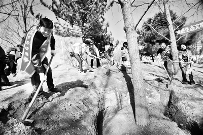 据统计,植树节期间,东城区共发动15万余人参加各项绿化美化活动,共设立宣传点30余个,栽植树木1000余株,养护树木20万株,清扫绿地35万平方米。于佳 摄