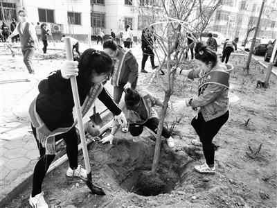 为贯彻“绿水青山就是金山银山”的发展理念,推进怀柔“美丽示范社区”建设,近日,龙山街道总工会联动妇联及辖区建会企业在南华园四区小区内开展了以“创文明城区,建花园社区”为主题的职工植树活动,吸引了50名职工参加。经过大家的共同协作与努力,一株株树苗挺拔而立,整个小区也变得春意盎然。