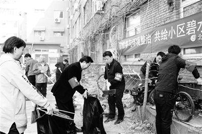 本报讯(记者 周世杰)4月4日下午,白纸坊右内西街甲10号院小区里随处可见“红马甲”。来自北京建工一建公司机关的八个党支部、物业分公司党支部以及白纸坊街道等单位的100余名党员、团员、入党积极分子,针对小区内垃圾乱丢、废弃杂物乱堆、绿化带杂草等卫生死角进行了全方位的清洁和整理。
