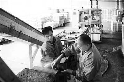 公司技术负责人宁月胜告诉记者,一般香皂制作,大多是使用成本低廉的动物性油脂,或者成本高昂的植物性油脂。在生产过程中,加入化学凝固剂,或者自然凝固,然后制作出一块块香皂。而国家专利产品节水香皂,首先是通过动植物油合成技术完成皂基制作,生产出易起泡、易冲洗的合格皂基。其后,将皂基投放入装料口,使用机械搅拌,经反复的物理挤压、抽条后,压模完成节水香皂锁芯与皂基的融合,随后进行晾干、装袋、装箱、入库、运输等流程,一块达到国家行业标准要求的节水皂皂头就可以进入各个使用场所了。