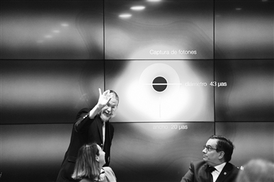 图为4月10日,在智利圣地亚哥,“事件视界望远镜”项目召开新闻发布会。