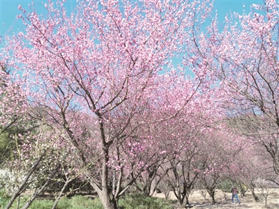 北京植物园从1998年开始种植梅花,2003年建成梅园,而今已有杏梅系、真梅系、樱李系梅花等90个品种、1300余株,有紫红、粉红、淡黄、淡墨、纯白等多种颜色,因花色品种多,种植数量大,一派靓丽景象,被誉为北京的“香雪海”。